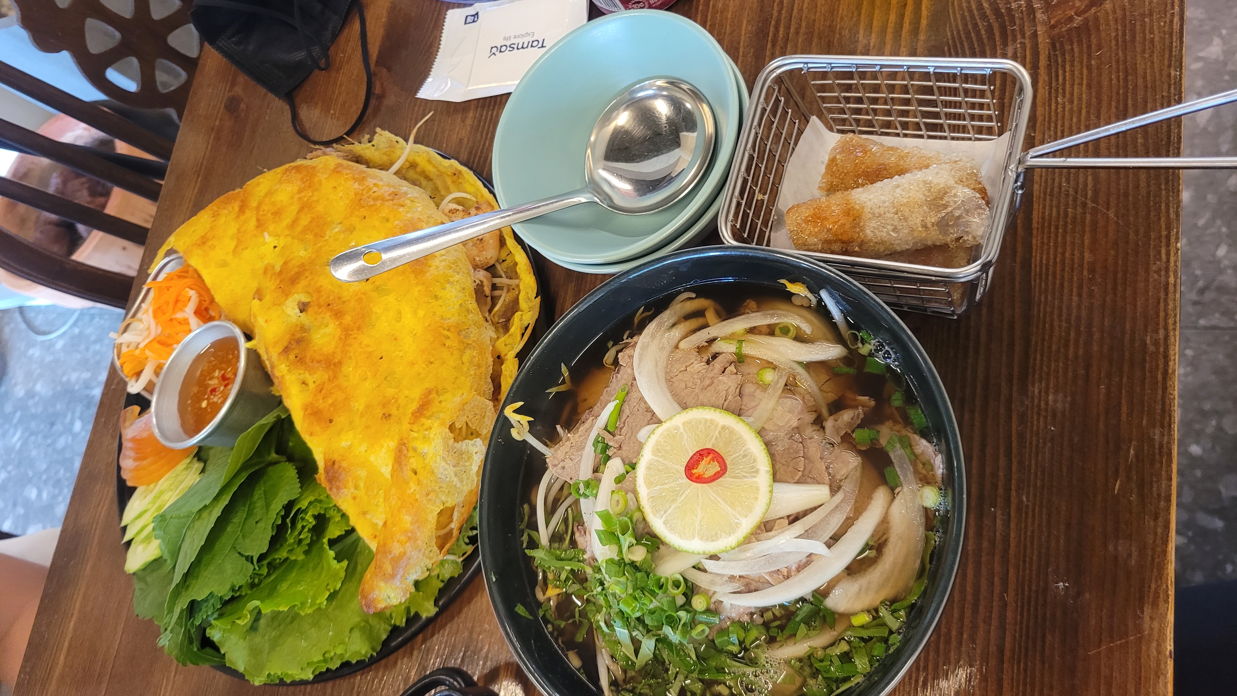 저희는 반쎄오가 포함된 2인세트(반쎄오, 쌀국수 1, 짜조 닭봉 중 택, 음료 1)를 주문, 쌀국수는 솔직히 엄청 맛있다는 아니었지만 고기도 들어가 있고 잡내도 없어 맛있게 후루룩, 반쎄오는 정말 맛있어요!